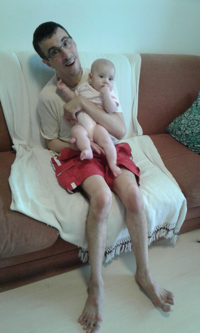 Nesta tarde, Silvia saiu, me sentei no chão para cuidar de Clara, que estava numa cadeira de balanço, e recebi pelo WhatsApp perguntas de uma prima que tinham de ser respondidas imediatamente. Não quis subir na cadeira adaptada na qual uso o computador porque Clara ia chorar, pensei em pedir que tal prima fizesse as perguntas a Silvia mas, em vez disso, as respondi ali mesmo sentado no chão e usando o tablet com o pé. Fiquei imaginando quantas pessoas sem deficiência teriam habilidade para fazer o mesmo.