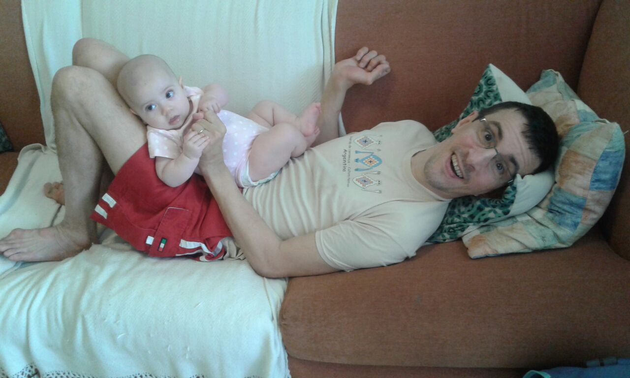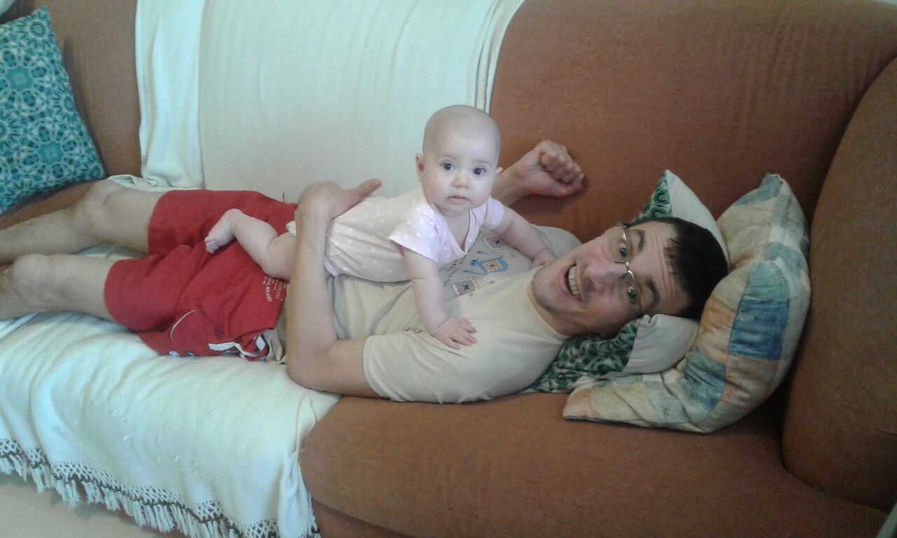 Recentemente, Silvia me contou o caso de uma mãe sem deficiência alguma que nunca conseguiu ficar sozinha em casa com seu bebê apenas por medo, o que achei desconcertante porque o faço corriqueiramente e, quando há algum problema, tento resolver antes de pedir ajuda aqui ela. Foi o que ocorreu ontem: Silvia teve de buscar suas filhas no apartamento do ex-marido me deixando sozinho com Clara no tapete de EVA, esta se virou de bruços, vomitou, fui engatinhando apressado até o quarto, peguei uma fralda com a qual limpei o vômito, a mão e a boca desta; em seguida, Clara começou a chorar por estar cansada da posição e não saber se desvirar, tive de fazer isso – algo difícil para mim – colocando um pequeno travesseiro para proteger sua cabeça; quando Silvia chegou, Clara estava alegre e brincando!