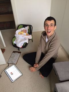Hoje após o almoço, Silvia teve de sair para levar suas filhas ao colégio e pegar uma nova guia para minha fisioterapia. Ela não conseguiu fazer nossa filha adormecer e pediu para nossa empregada tentar isso. Depois desta fazê-lo, para não atrapalhar seu trabalho pedi que botasse nossa filha no carrinho para ver se eu a mantinha dormindo, mas não tive sucesso nas duas tentativas que fiz. Então pedi que a colocasse no bebê conforto – que dessa vez balancei com a mão –, finalmente consegui que dormisse uns 40 minutos, me dando tempo de ler algumas coisas no tablet, até que nossa filha ficou com fome e não tive mais jeito a dar.