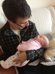 Começo a ter prática de pegar nossa filha, embora às vezes fique tenso, o que a deixa desconfortável, e meu braço esquerdo se canse em alguns minutos – não tenho coordenação no direito o suficiente para segurá-la. Quando acerto, é difícil querer devolvê-la para Silvia.
