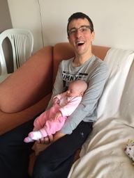 Hoje, pela primeira vez segurei nossa filha nos braços, achando que ela já tem tamanho suficiente para não correr o risco de se machucar com minha descoordenação motora. Estava no início de uma sessão de fisioterapia e, para retomar os exercícios, tive de devolve-la para Silvia muito a contragosto.