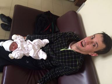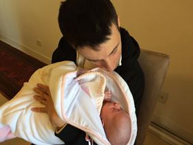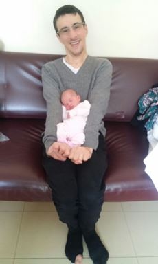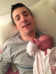 A fragilidade da minha filha, que ainda não tem um mês de vida, me faz ficar tenso quando a pego com medo de apertá-la excessivamente ou ela cair dos meus braços, o que aumenta minha espasticidade (rigidez muscular) e isso torna real o risco de machucá-la. Portanto, oportunidades como as mostradas nestas fotos ainda são raras. Espero que o crescimento dela e o uso de um sling mudem tal situação.